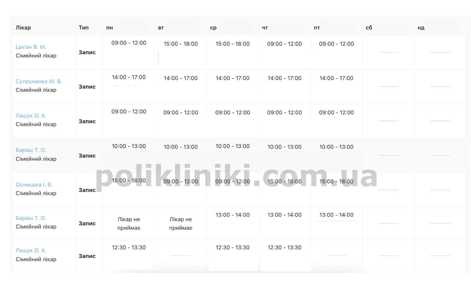 Пошук полікліник